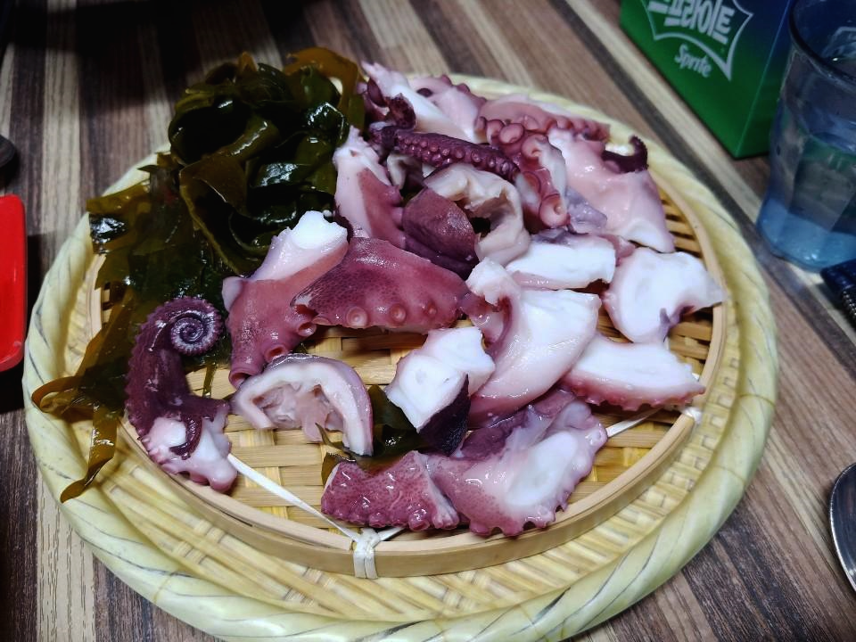 문어는 숙회로 처음 먹어봤는데 식감이 생각보다 괜찮더라구요. 쫄깃쫄깃하면서 씹을때마다 바다의 맛과 함께 문어의 육즙이 좋았답니다. 미역과 함께 먹으면 맛은 굿 굿 베리굿.
