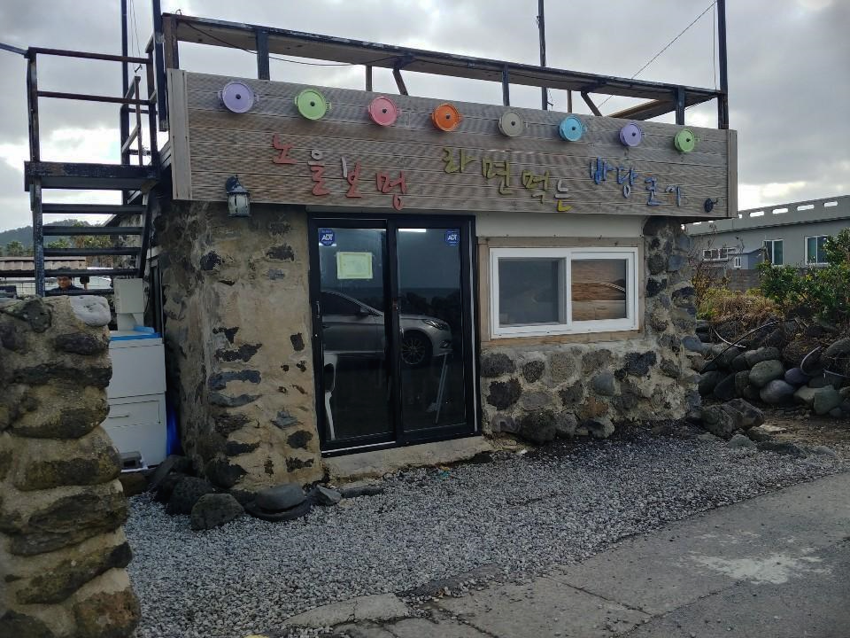 제주 애월 맛집으로 유명한 노라바는 건물을 두개로 사용을 하더라구요. 처음에는 두 건물이 따로따로 가게인 줄 알았는데, 많은 분들이 라면을 먹고 나오는 것을 보고 알 수 있었어요.