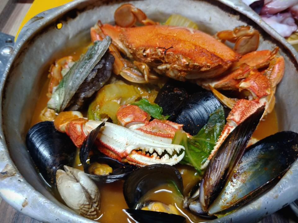 해물라면을 보면 알겠지만 깡패에요. 비주얼깡패. 손바닥만한 꽃게가 라면위에 뿅하고 자리를 잡고있는데 약간 먹을 때 불편함은 있지만 괜찮았답니다. 꽤 많은 양의 조개와 홍합이 들어있고 전복이 띡하고 들어있어요.