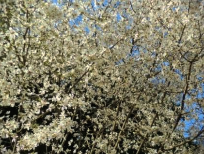 가지 끝에서부터 잎보다 흰색 꽃이 먼저 펴요. 열매는 닭의 볏 모양으로 9~10월에 익는다고해요. 양지와 음지를 가리지 않고 내한성과 내공해성이 좋답니다.