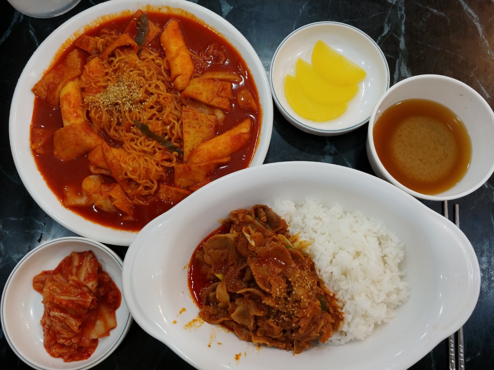 안양일번가엔 학생들이 많은데 한끼로 먹었을 때 든든하게 먹을 수 있지 않을까 싶어요. 하준스는 많이 먹는 편이라 메뉴를 제육덮밥과 라볶일이를 주문했어요.