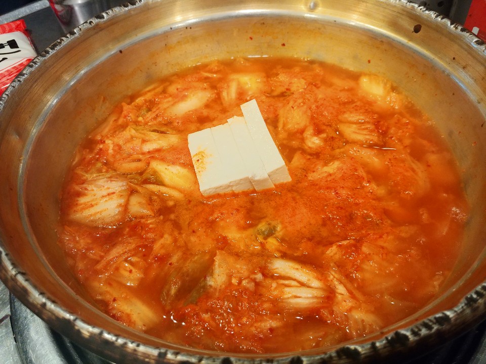 기다림 끝에 몸을 녹일 수 있는 김치찌개가 드디어 나왔어요.