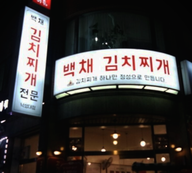 지금 보시는 사진은 백채 김치찌개의 외관으로 코너에 위치하고 있어요.