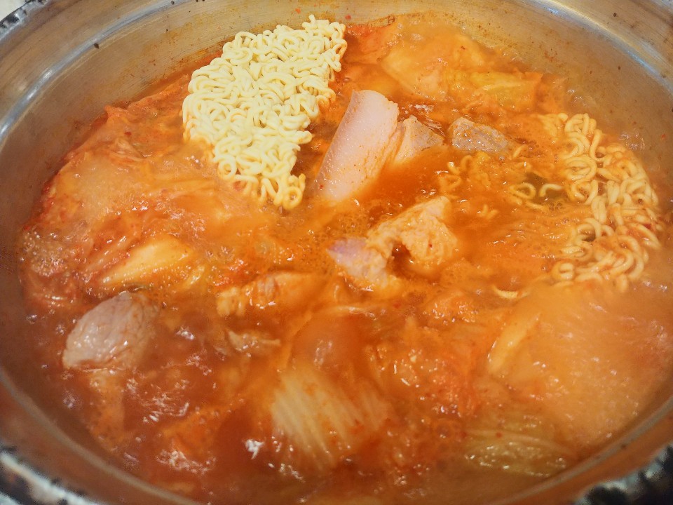 기다림 끝에 몸을 녹일 수 있는 김치찌개가 드디어 나왔어요.