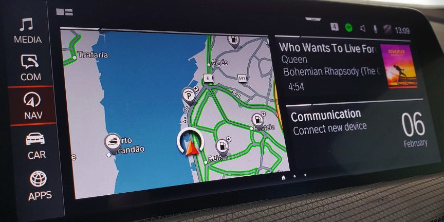 BMW 커넥티드 패키지 프로페셔널은 스마트폰 앱으로 차량 원격제어가 가능한 리모트 서비스를 비롯하여, 무선 애플 카플레이, 실시간 교통정보와 같은 서비스를 지원해주며, 신시간 교통정보 서비스는 T맵의 실시간 교통정보를 3분간격으로 수신해 주어 최적화된 안내기능을 제공해줍니다.