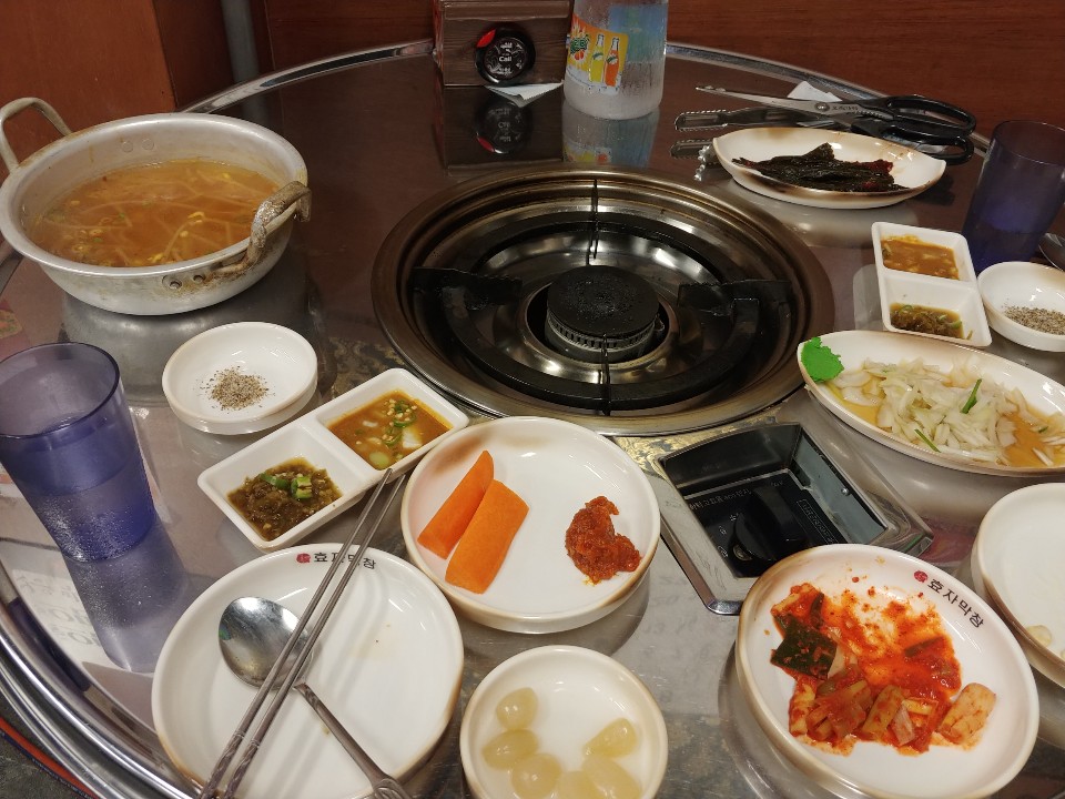 모듬구이를 주문하고 얼마 지나지 않아 등장한 밑반찬.