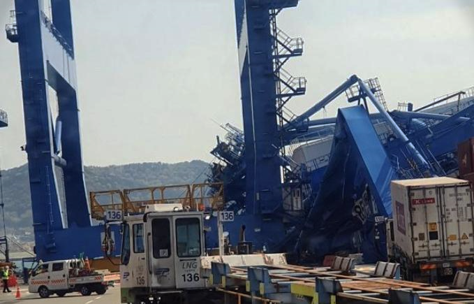 앞서 지난 6일 오후 2시 50분께 부산항 신항 국제터미널 컨테이너 7번석에서 15만706t급 화물선 '밀라노 브리지-150'이이 높이 40m 가량의 대형 컨테이너 크레인을 들이받아 이 사고로 부산신항 2부두 8번 선석에 위치한 육상크레인 1기가 붕괴되고, 주변에 있던 크레인 3기가 부분파손됐다고 합니다.