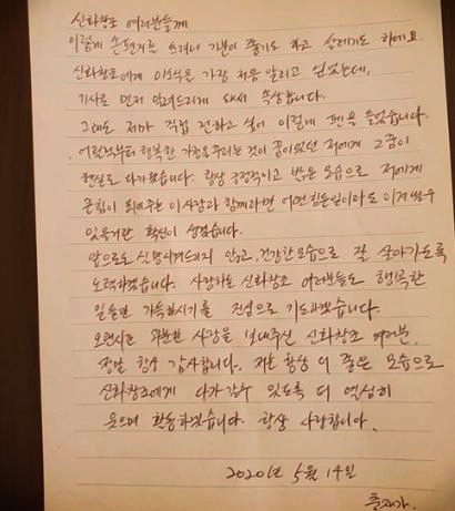 손으로 써 내려간 편지를 보았는데, 정말 진심이 많이 느껴지더라구요.