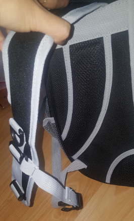백팩으로 착용했을 때 앞쪽으로 가슴 윗부분에 고정시키는 버클이 있어요. (안정감있게 멜 수 있어요)