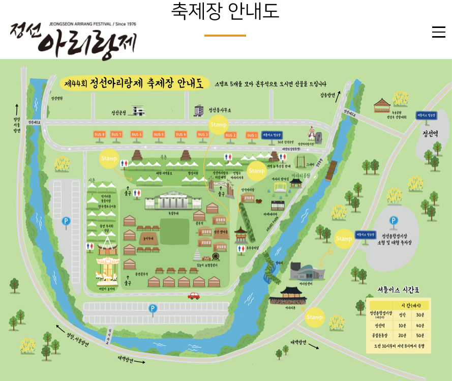 다양한 프로그램을 시작하기에 앞서 정선아리랑제 축제가 진행 될 안내도를 먼저 보도록 할게요.