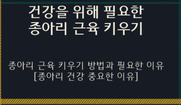 - 건강을 위해 필요한 종아리 근육 키우기 -