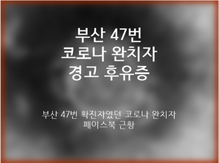 부산47번 확진자는 지난 16일 요즘도 크게 5가지의 후유증 증상이 계속되고 있따는 글을 올리고 후유증을 호소했는데요.