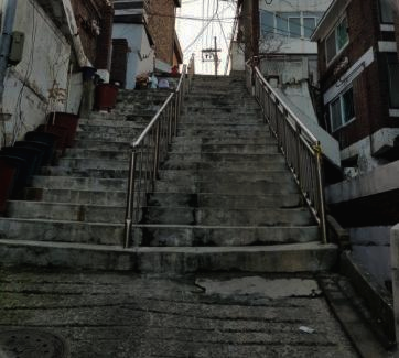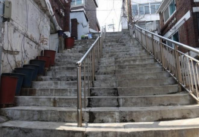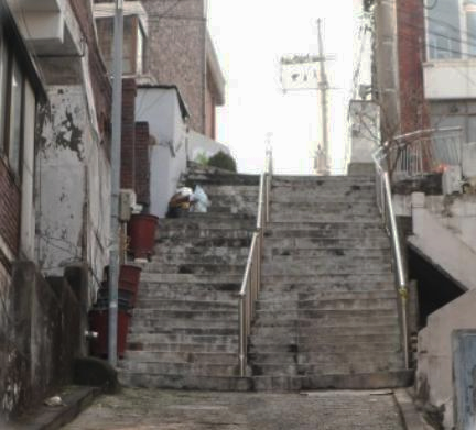 한밤중에 쏟아지는 비를 맞으며 허겁지겁 뛰어 내려가던 계단이에요.