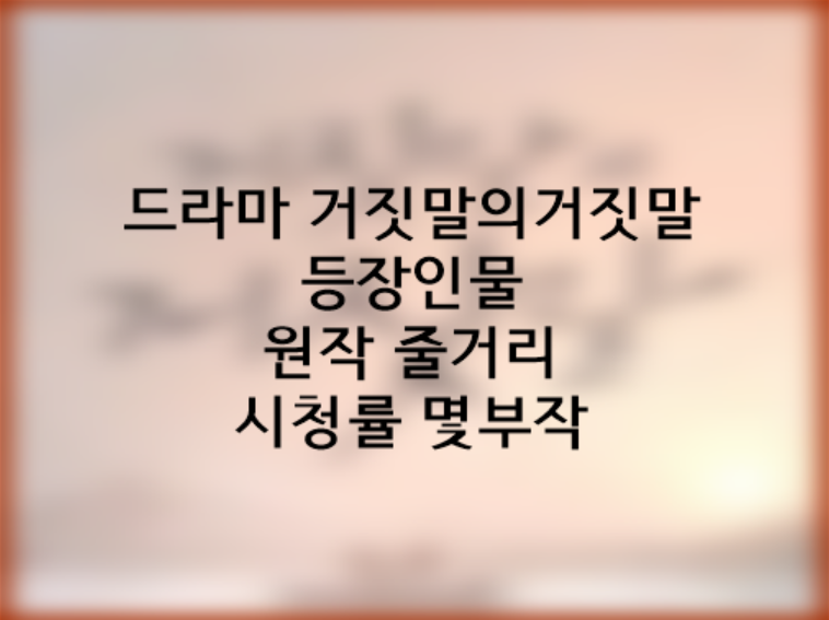 - 드라마 거짓말의거짓말 등장인물 원작 줄거리 시청률 -