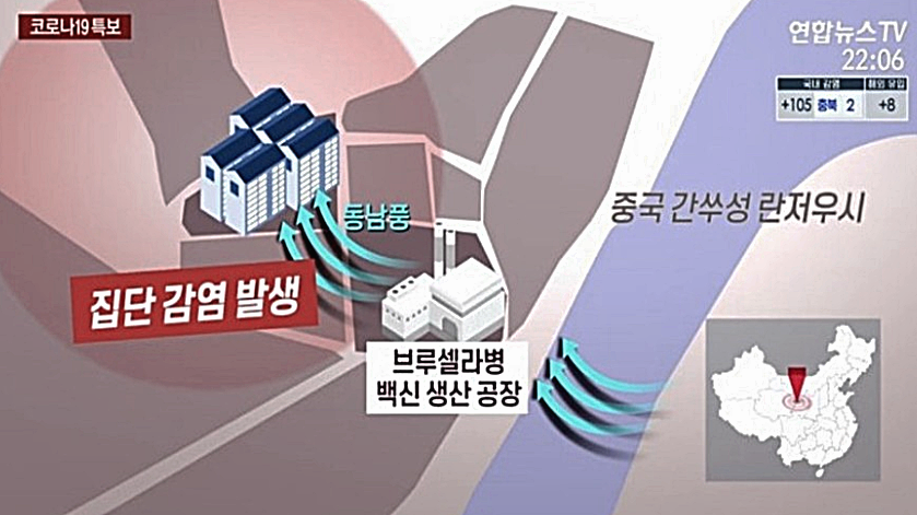결국 이 균이 포함된 폐기물들이 에어로졸 형태로 외부로 퍼지게 되고 동남풍이 주로 부는 그 방향에 있는 란저우 수의연구소의 연구원을 포함하여 주민들이 흡입이나 점막 접촉 같은 방식으로 감염이 된 것입니다.