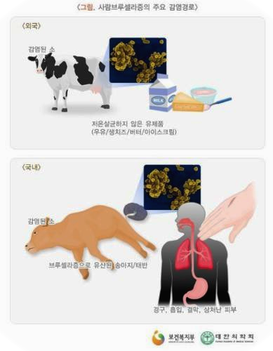 첫번째 익히지 않은 고기를 섭취했을 때인데요. 감염된 동물의 덜 익힌 고기를 먹어도 감염이 되는걸로 알려져있어요. 두번째 살균되지 않은 유제품, 이 역시 가축인 소, 염소 및 양의 젖을 통해 감염이 된답니다. 마지막 동물과의 접촉으로 감염이 될 수 있는데, 호흡기를 통하거나 감염된 동물의 체액과 접촉을 통해 사람에게 전파가 된답니다.