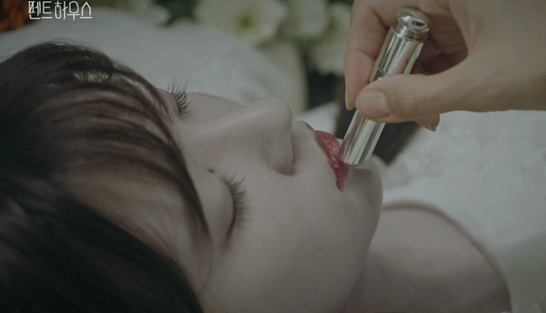 민설아가 죽을 때 볼 수 있던 립스틱, 디올 어딕트 립글로우 컬러 어웨이크닝 립밤입니다. 1만원대 후반인 이 립스틱은 드라마에서도 볼 수 있듯 촉촉하고 자연스러운 생기를 주는 립밤이에요. 자연스럽고 가볍게 발리는게 특징입니다. 후반부로 갈수록 점점 톤다운 되는 그녀의 입술 색을 볼 수 있는데, 비비드한 색도 어울리지만, 톤다운 된 색상이 더 잘 어울리는 것 같았어요.