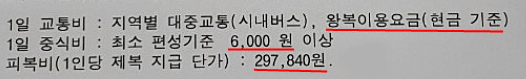 이제 교통비와 중식비를 보도록 할게요. 군인과 다르게 교통비와 중식비를 실비로 지급해주는데요. 대중교통의 경우에는 배정받은 기관의 예산책정에 따라 +@가 될 수도 있어요. 기관마다 다른데, 왕복비로 2700원 정도로 보고 있답니다.