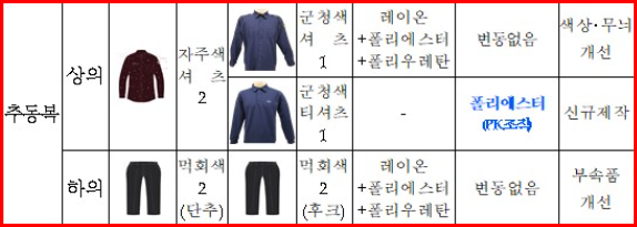 2021년 2월 이후 소집되는 요원들부터 제복은 변경될 예정이며, 하복, 추 동목의 경우 기존 자주색 셔츠 2장, 먹회색 바지 2장에서 군청색 셔츠 1장과 군청색 티쳐스 2장, 회색바지 2장으로 변경될 예정이라합니다. 이번에는 불편함을 덜기 위해 사회복무요원들의 의견과 의상학 전공자들의 의견, 의상관련 대학교수님의 의견을 모두 반영하여 결정하게 되었다는 이야기.