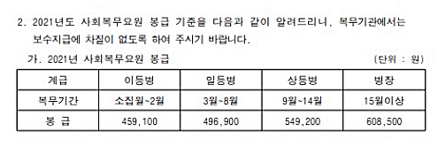 - 2021 공익월급 사회복무요원월급 얼마나 인상됐을까 -