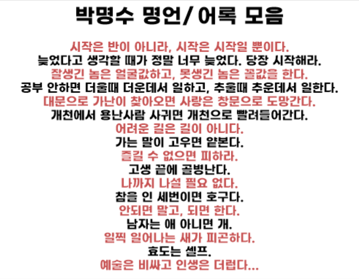 몇년 전부터 떠도기 시작한 그의 명언, 그래서 그의 명언이라든가 어록이 짤로도 많이 돌아다니기도 하죠. 주옥 같은 그의 명언이 많이 있지만, 저에게 팍팍 꽂히고, 한대 맞은 듯한 충격을 주었던 명언, 어록들을 정리해서 모아봤어요.