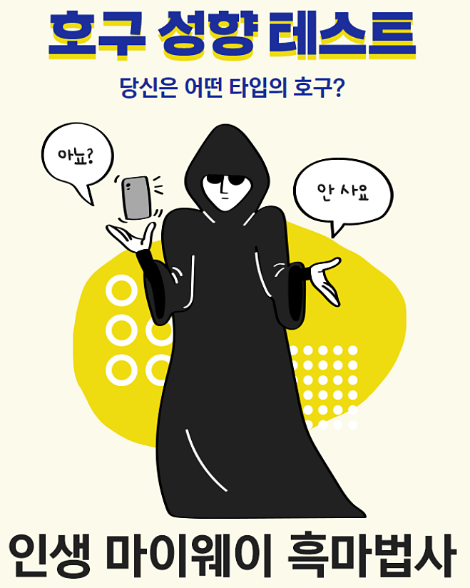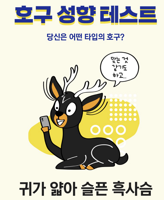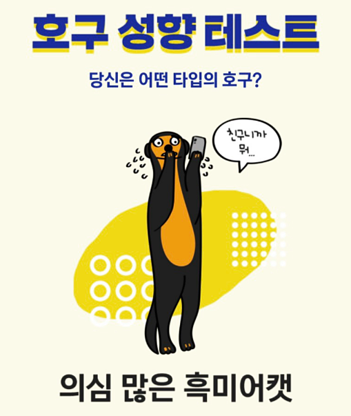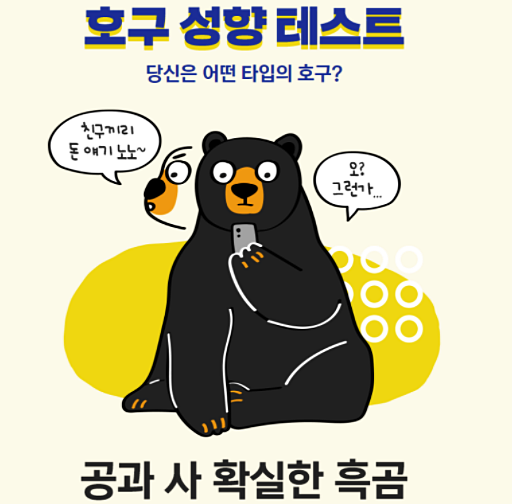 오늘 역시 재밌는 테스트를 하나 준비해 왔답니다. 바로 '호구성향테스트'인데요.