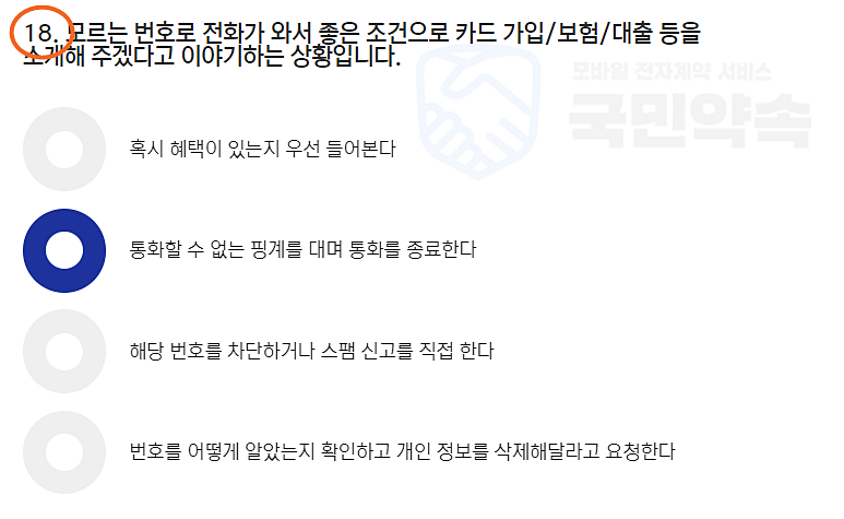 이렇게 18번까지 질문에 대한 답을 해주면 된다. 내가 체크한 걸 봤는데 음 스스로가 봐도 호구잡히기 좋은 것 같다.