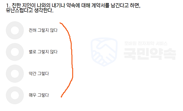 요런 질문이 나오는데 해당하는 곳에 체크를 해주면 된다 질문은 총 18개. 1번질문도 거의 구두로 많이 하지, 계약서까지 만들어야 하나? 생각이 들었는데, 이런 생각때문에 호구가 되는거겠지...? 흑흑