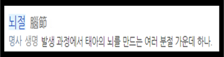 뇌절뜻은 사전적의미로는 '생명 발생 과정에서 뇌를 만드는 여러 분절 가운데 하나.'라고 되어 있어요.