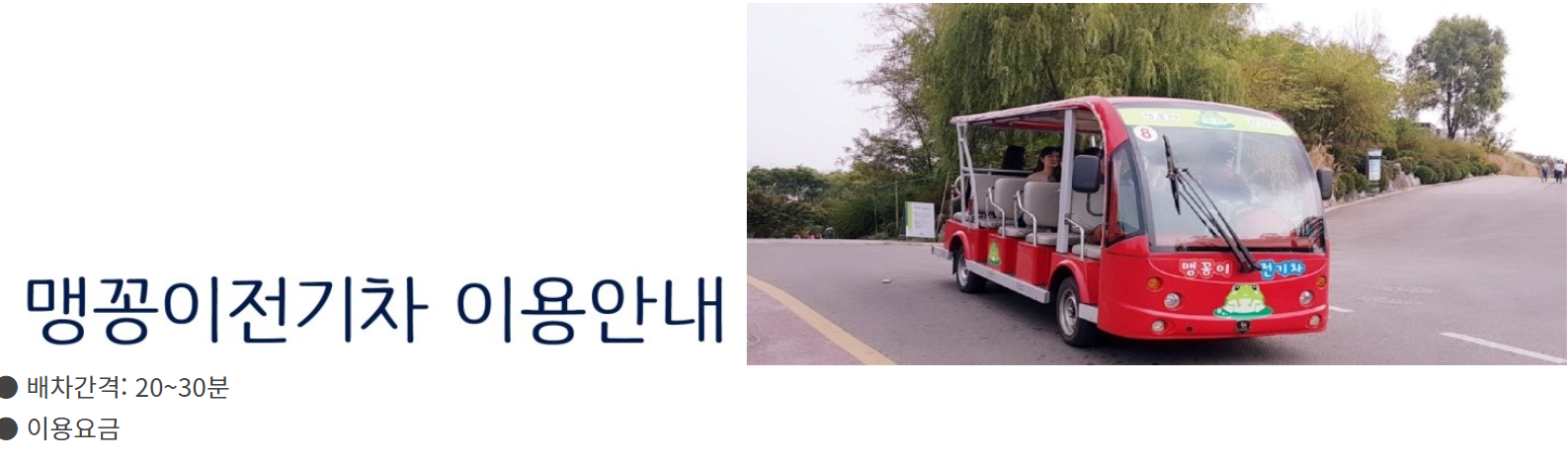 운행시간이 월마다 조금씩 다르고 , 평일과 주말 또한 시간이 조금씩 달라서 맹꽁이전기차를 이용하실 분들은 미리 보시고 가면 좋을 것 같아요.