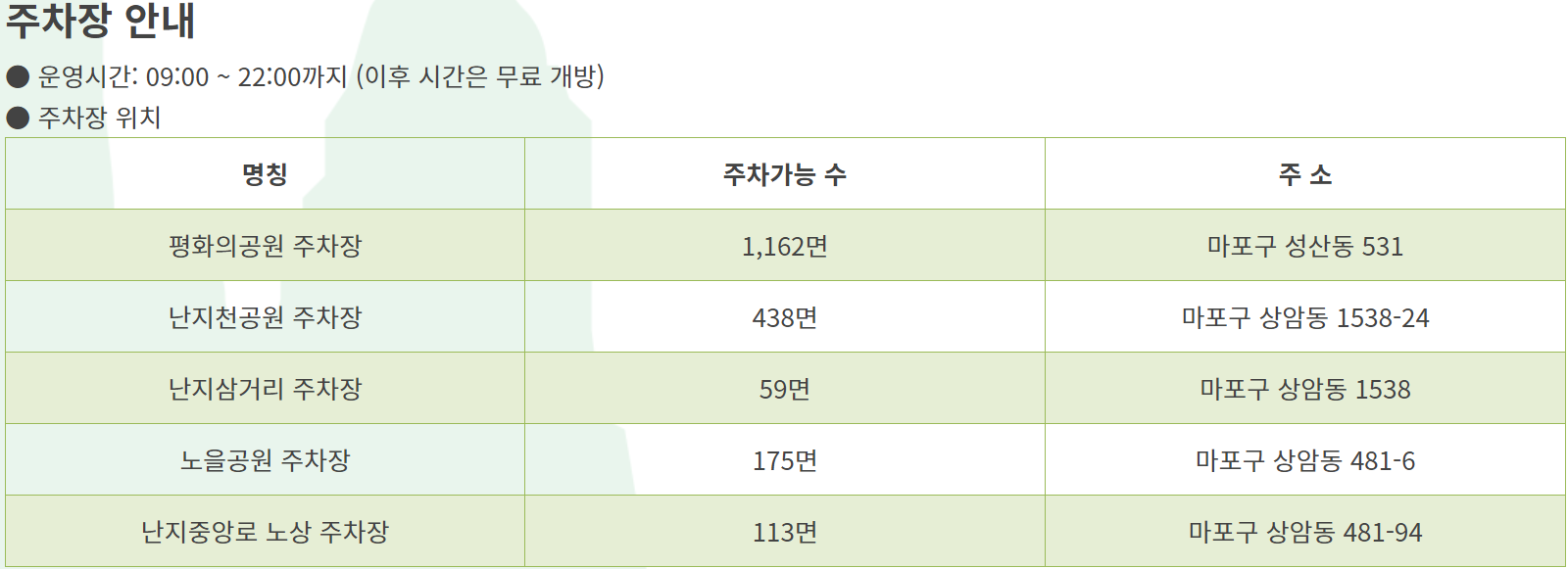 주차장의 운영시간도 있으니 확인하시면 좋을 것 같습니다.