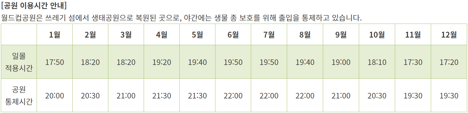 하지만 공원의 이용시간이 있기때문에 이 부분은 알아두시면 좋을 것 같아요.