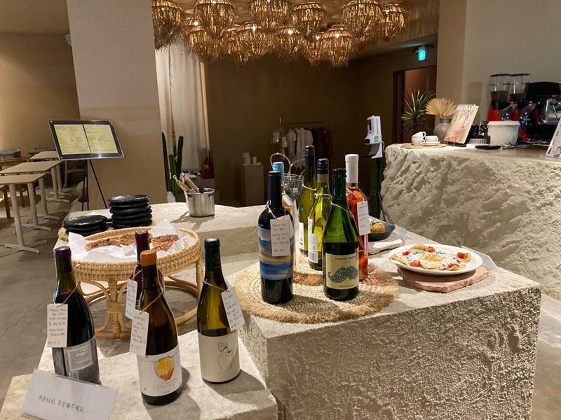 제주도 호텔샌드에서는 바다를 보며 간단하게 즐길 수 있는 베이커리류와 주류 그리고 음식이 있다.