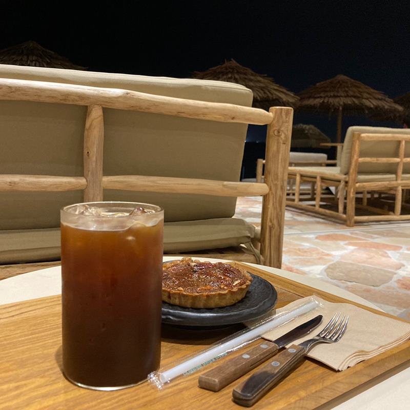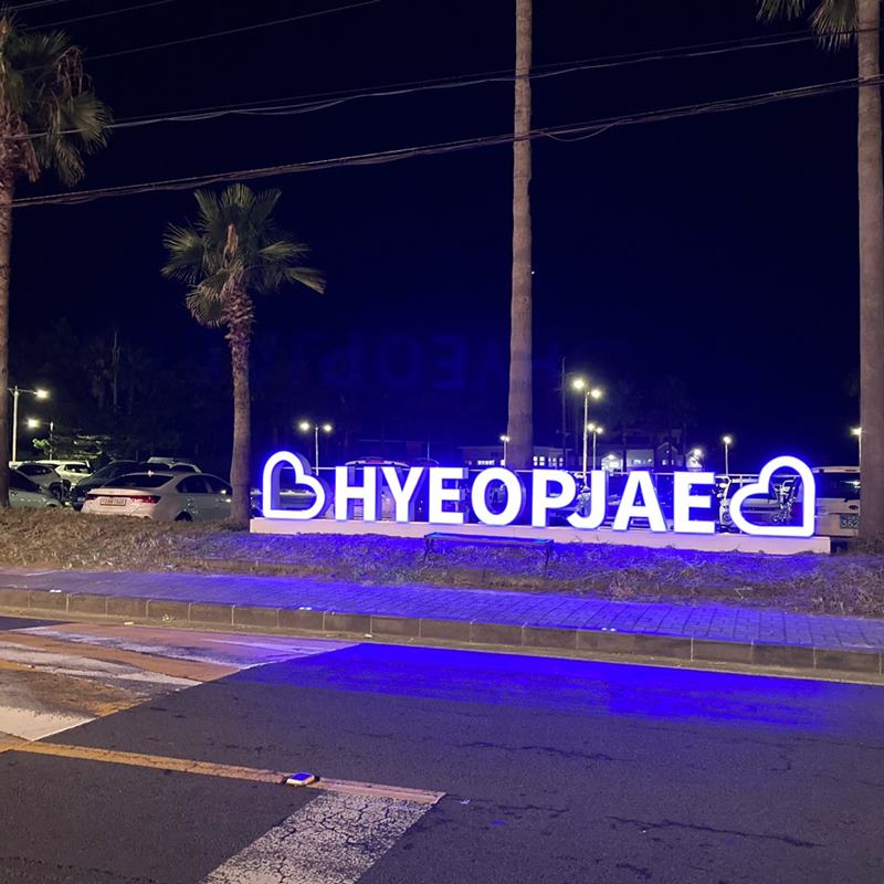 추후 방문할 때에는 저녁즈음 가도 사람이 많았지만 처음 방문했을 땐 사람이 많지 않고 한적하여 원하던 자리에 앉을 수 있었다. 바로 협재해수욕장 앞에 위치해 있어서 조용히 밤바다를 감상하기 너무 좋았고, 카페에서 들려오는 음악도 분위기와 너무 잘 어우러졌다
