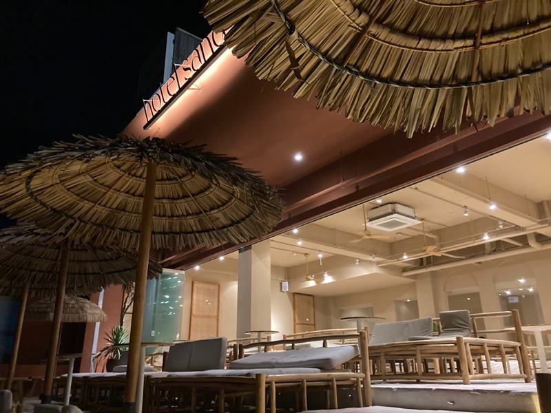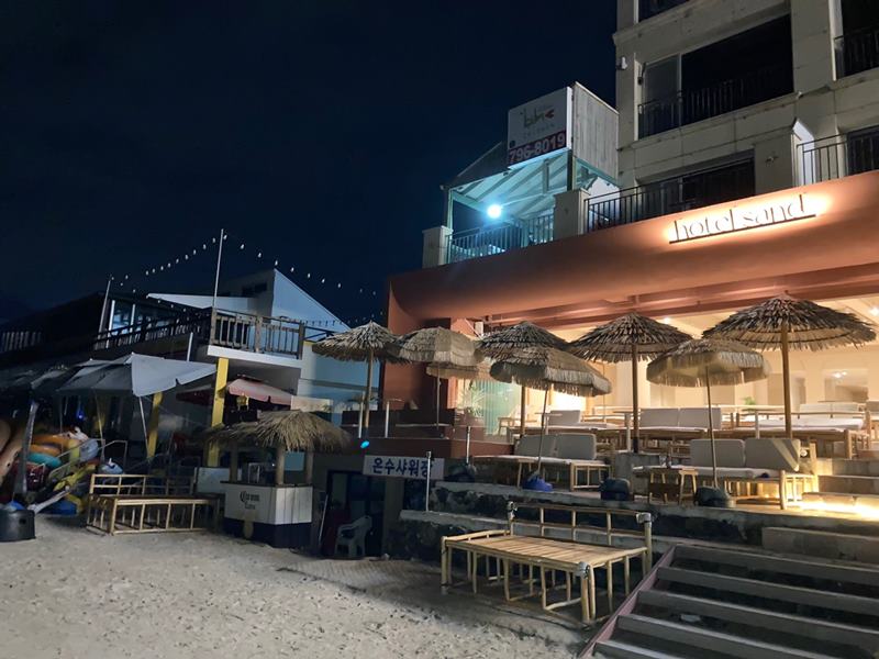 태풍 소식이 있던 때라 그런지 주변에는 사람도 많이 없었고, 덕분에 주변을 편하게 구경할 수 있었다. 그러던 중 바다 바로 앞에 위치한 제주도 호텔샌드가 눈에 들어왔다. (hotel sand)