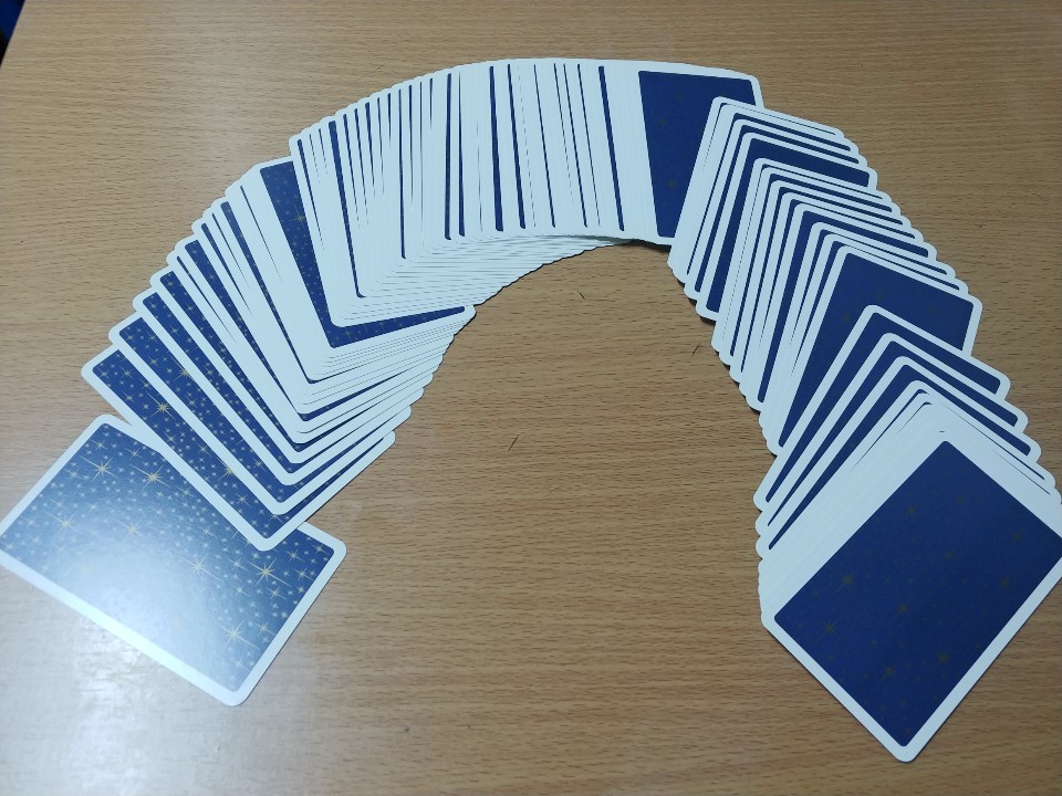 셔플이 아직 익숙하지 않아서 그런지 셔플을 할 때 카드가 많이 떨어지더라구요. 셔플연습도 많이 해둬야겠다고 생각을 했지만, 식탁 위에 그냥 펼치니 카드가 제대로 펼쳐지지 않더라구요.
