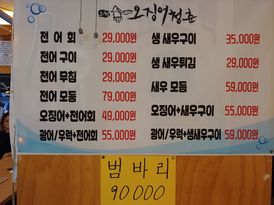 밖에 놓여진 수족관을 보는데, 크기도 크기지만 신선해보여서 좋았어요. 물고기와 대하한테는 좁을 수도 있었겠지만, 그 안에서 싱싱하게 다니는 모습에 오징어청춘이 좋게 보이더라구요.