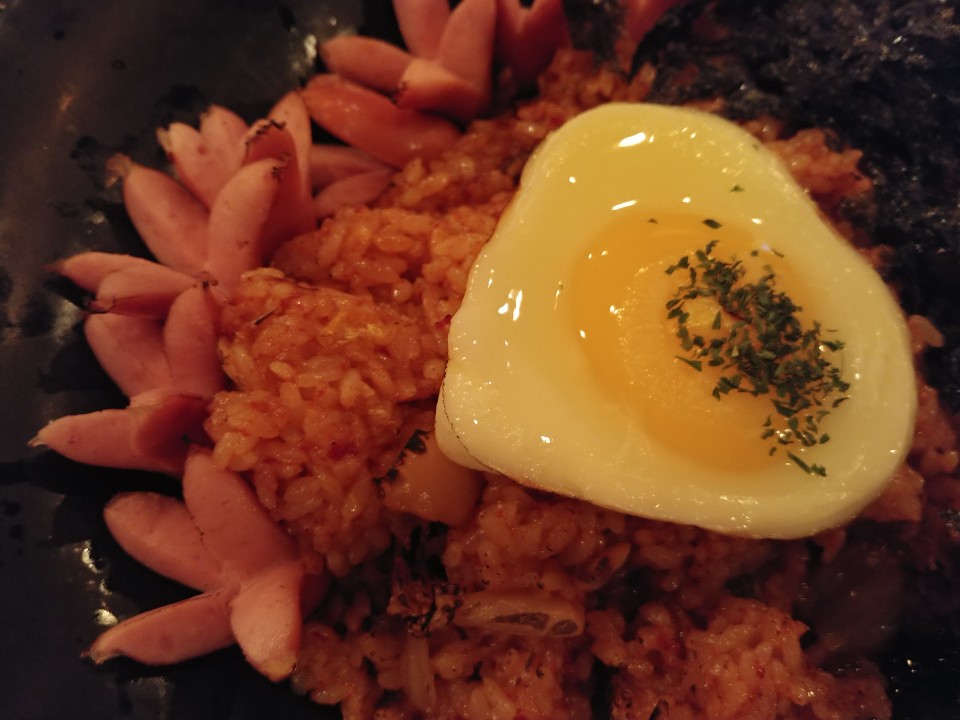 비엔나김치볶음밥이 좋았던 이유는 우선 햄이 많아서 좋았구요. 계란후라이가 반숙으로 아주 먹음직스럽게 나와서 보기에도 너무 좋았어요. 노른자를 탁 터트려서 김치볶음밥과 함께 먹었더니 노른자의 향과 김치볶음밥의 매콤 달달한 맛의 조합이 아주 일품이었답니다.