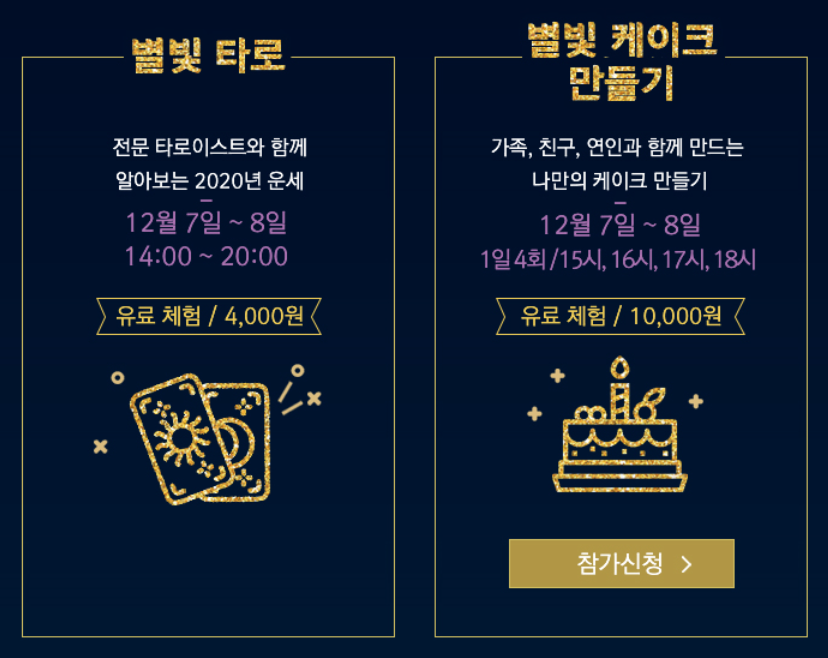 시간을 강조한 이유는 케이크 만들기 같은 경우 1일 4회만 진행하며 정해진 시간에만 할 수 있기 때문이에요. 타로카드를 통해 궁금한 것도 해결하구, 케이크 만들기를 통해 연인과 함께 좋은 추억을 만들 수 있는 축제가 아닐까 싶어요.