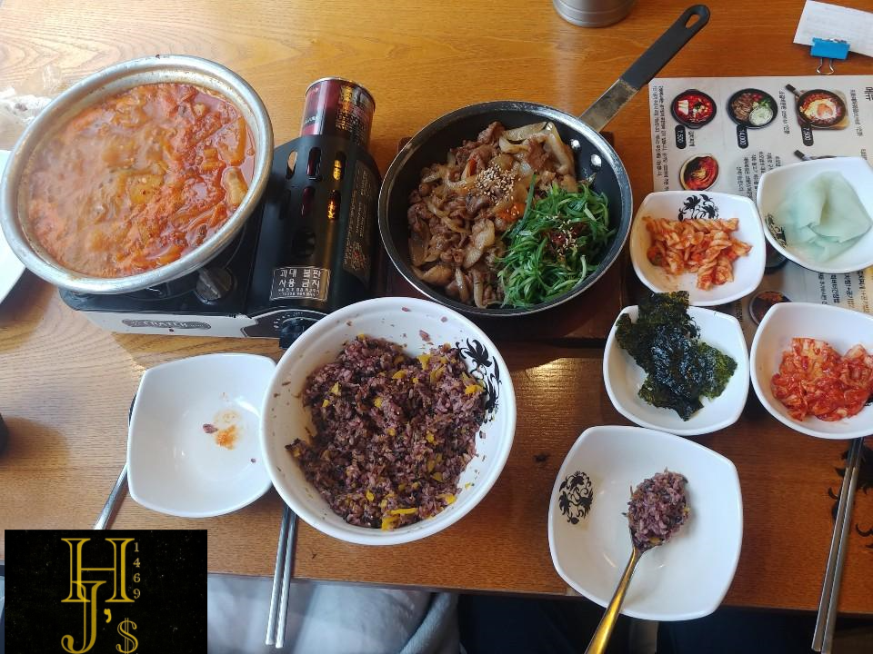 사진을 찍담보니 메뉴가 나오더라구요. 처음엔 김치찌개 그 이후엔 직화불고기볶음 마지막엔 갈릭버터간장밥 이렇게 순서대로 나왔어요. 김치찌개의 가장 좋은점은 너무 시지않고 살짝 달달하면서 돼지고기가 도톰하게 많이 들어있다는 점이에요. 보통 김치찌개를 시키면 돼지고기 김치찌개를 주문해도 많이 안들어있는 경우가 많거든요. 그런데 여기는 그렇제 않았어요. 그리고 직화불고기볶음은 고기의 식감이 좋았는데요. 데리야끼소스가 고기에 너무 잘 스며들어가있엇어서 소스와 고기의 조화가 너무 좋더라구요. 그래서 맛있게 먹을 수 있었는데요. 클라이막스는 갈릭버터간장밥이 해준 것 같았어요. 갈릭버터간장밥인데 갈릭 버터간장밥인데도 갈릭, 마늘의 맛이나 향이 그리 강하지 않았어서 갈릭버터간장밥인지도 모르고 먹었답니다. 김치찌개와 직화불고기볶음과 너무 잘 어울리니 한번 드셔보셔도 좋을 것 같아요. 이렇게 맛있는 한식으로 배를 부르게 하고 밥집 바오밥을 기분좋게 나와서 산책을 갔답니다. 다들 대학로를 가게 될 경우 한번 들려보셔도 좋을 것 같아서 추천해드려요. 맛있게 배를 채울 수 있을거랍니다.