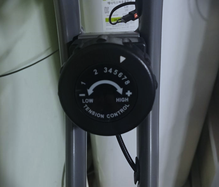 1단계에서 8단계까지 난이도를 조절 할 수 있어요. 1단계에 놓으면 페달이 휙휙 돌아간답니다. 정말 나중에 다리힘이 완전 빠져버렸거나, 하체에 근력이 없다면 1단계에 놓구 페달을 돌리시면 편하게 돌릴 수 있을거에요.