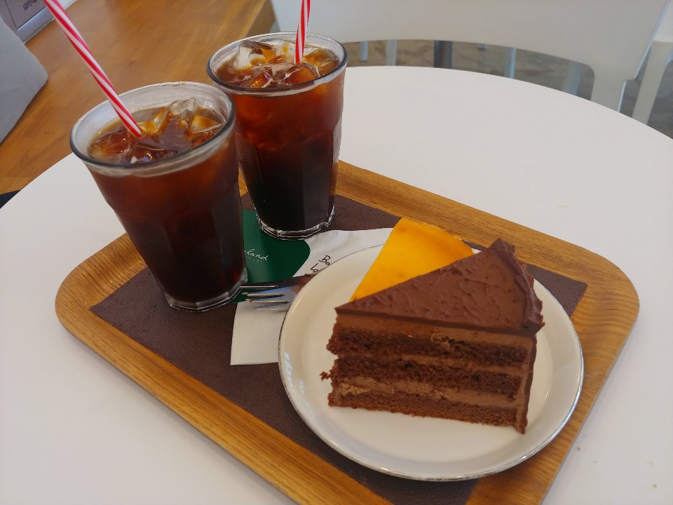 아침을 먹고 바로 오긴했지만, 디저트를 빼면 아쉬울 것 같아서 아이스아메리카노 두잔과 초코케잌 그리고 치즈케잌을 같이 주문했답니다.