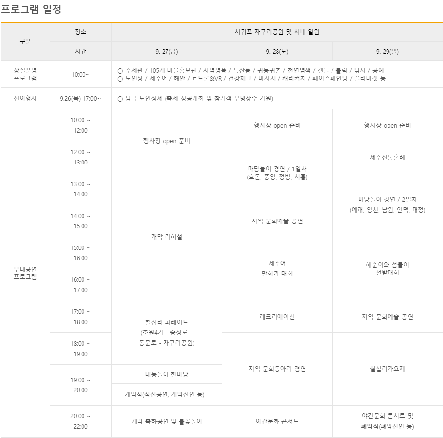 ▶제 25회 제주 서귀포 칠십리축제 주요 프로그램 내용